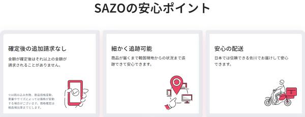 SAZOは韓国ショップでの購入、検品、国際配送という複数の工程を挟むため、