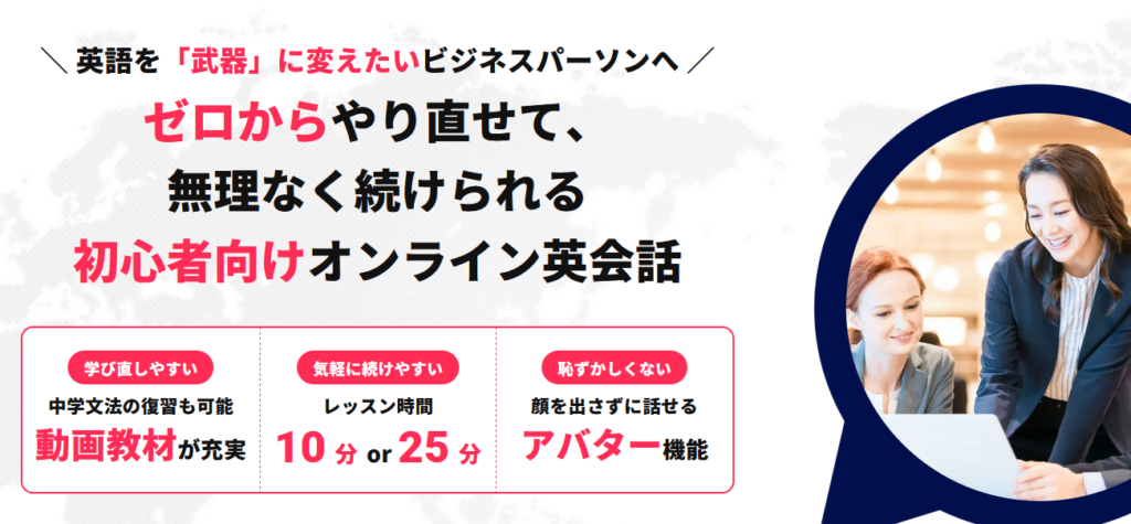 学生向けの受験対策や子ども専門というよりも、社会人や英語学習をやり直したい層を想定した設計になっています。