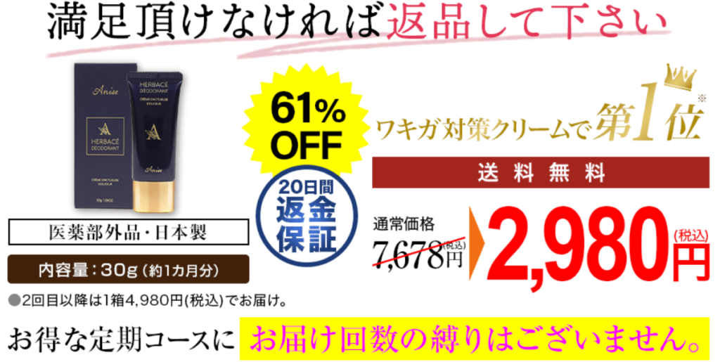 アニセ ワキガ対策クリームを最安値で購入できるのは公式サイトです。
