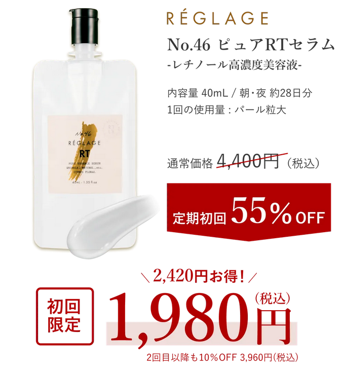 また、No46.ピュアRTセラムは単発使用ではなく、継続使用を前提としたアイテムとして位置づけられています。